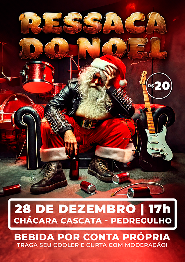 Depois de entregar todos os presentes, é hora de relaxar e curtir um som pesado! Vem com a gente para a RESSACA DO NOEL, a festa onde o metal rola solto e a diversão é garantida.